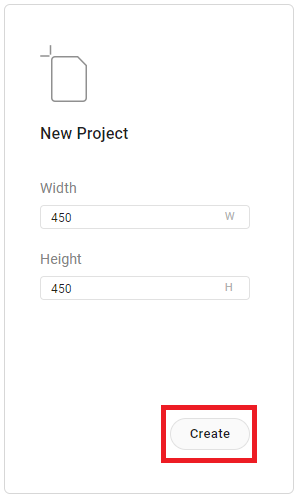 워치페이스를 만들기위해 Watch Face Studio를 실행시킵니다. New Project의 해상도는 450*450으로 고정되어 있습니다. 그대로 두고 오른쪽 아래에 있는 Create를 누릅니다.