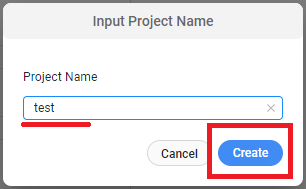 원하는 프로젝트명을 입력 후 Create를 누릅니다. 저는 test로 입력해 보았습니다.