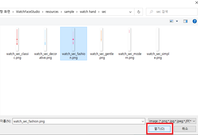 그럼 초침을 선택하는 창이 나옵니다. 원하시는 초침 디자인을 선택 후 열기를 누릅니다.